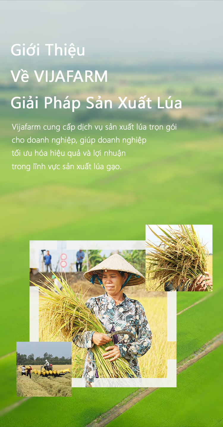 Vijafarm cung cấp dịch vụ sản xuất lúa trọn gói cho doanh nghiệp, giúp doanh nghiệp tối ưu hóa hiệu quả và lợi nhuận trong lĩnh vực sản xuất lúa gạo. Bao Gồm: